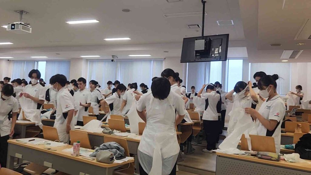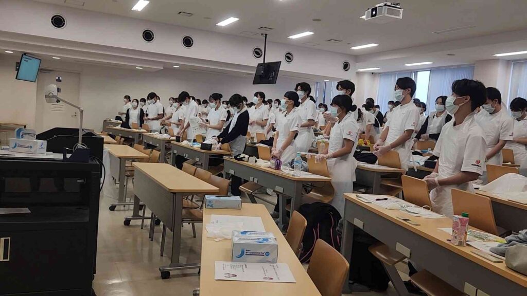 この授業は感染から自分と患者さんを守るための知識や技術を学びます。