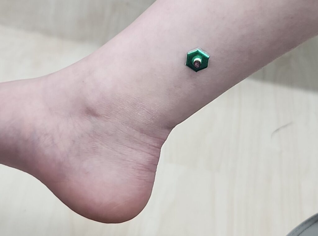今回体験した鍼はとても小さくて見た目はただのシールのよう。