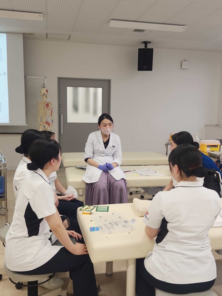 今回は助産師コースの学生達が鍼灸(しんきゅう)健康学科の先生のコラボ授業を紹介します。